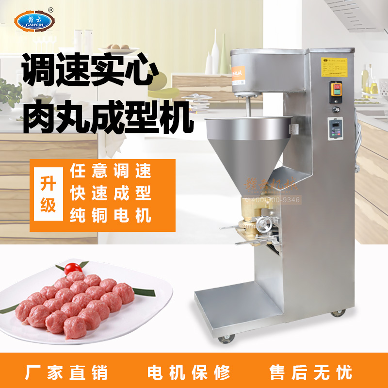 調(diào)速肉丸成型機是在實心肉丸成型機的基礎(chǔ)上,改開關(guān)控制為變頻數(shù)字調(diào)速控制,成型速度可變。是做實心豬肉丸、魚肉丸、牛肉丸成型不二選擇。詳細技術(shù)參數(shù)可參考實心肉丸成型機GY-SX-120型肉丸成型機。