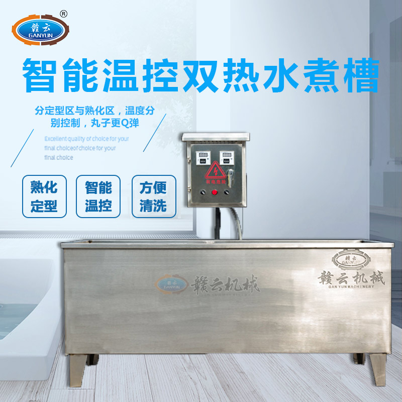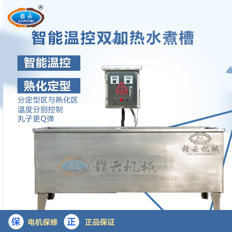 GY-ZW-1500型自動恒溫定型熟化水槽,也叫智能溫控雙加熱水槽,是我公司新設(shè)計開發(fā)的,一款適用于貢丸、包心肉丸、獅子頭、墨魚丸、實心肉丸、蔬菜丸子、米果丸子等定型熟化加熱用水槽。