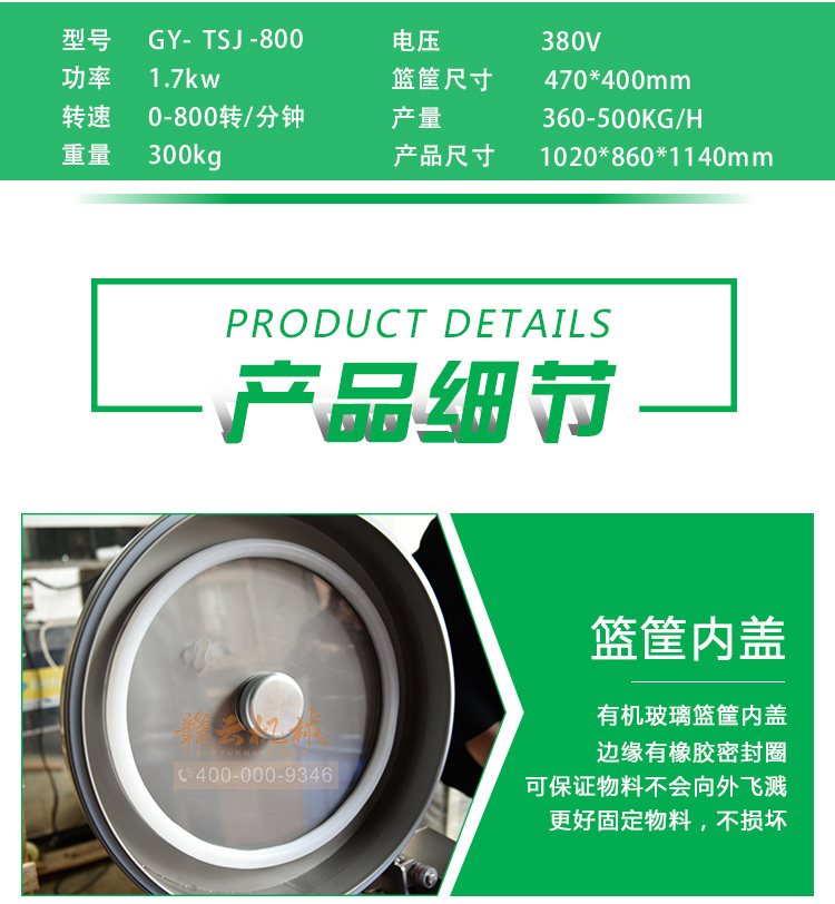 (7)設計獨特的菜籃內蓋,可保證物料不會向外飛濺,造成浪費。
