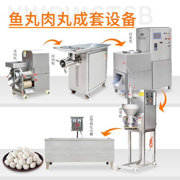 這套魚丸全套設(shè)備適用于中小適作坊生產(chǎn)魚丸,機器包含:魚肉采肉機,絞肉機,打漿機,魚丸成型機和智能溫控雙加熱水槽,針對不同類型的丸子都可以生產(chǎn)加工,做出的肉丸口感爽脆、味道鮮美有韌性,多用于肉丸店食堂餐飲酒店個體戶等的肉丸加工設(shè)備