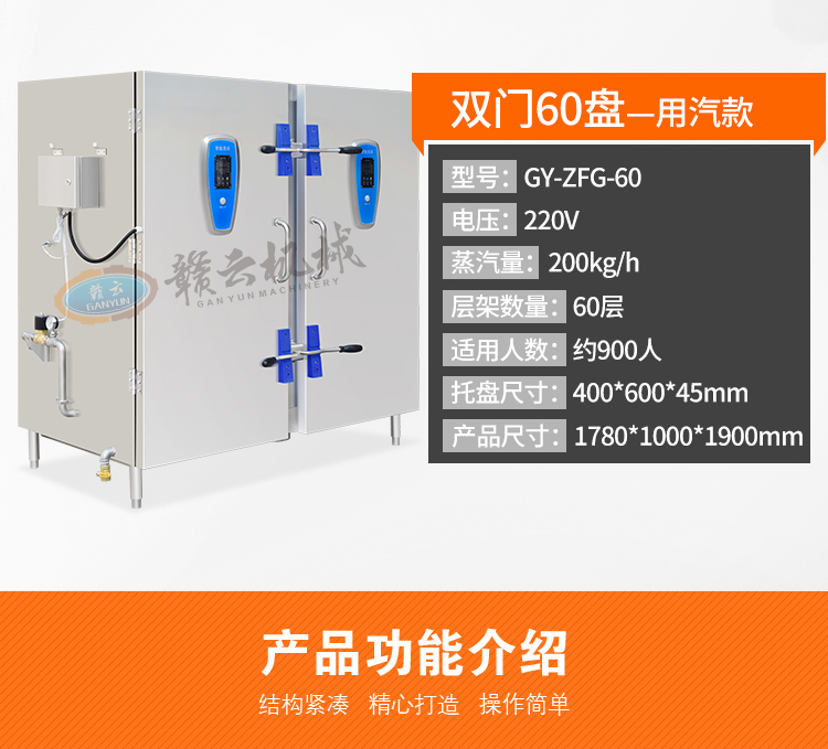 中央廚房設(shè)備->米飯?jiān)O(shè)備->雙門智能蒸房(60盤) | |||||||