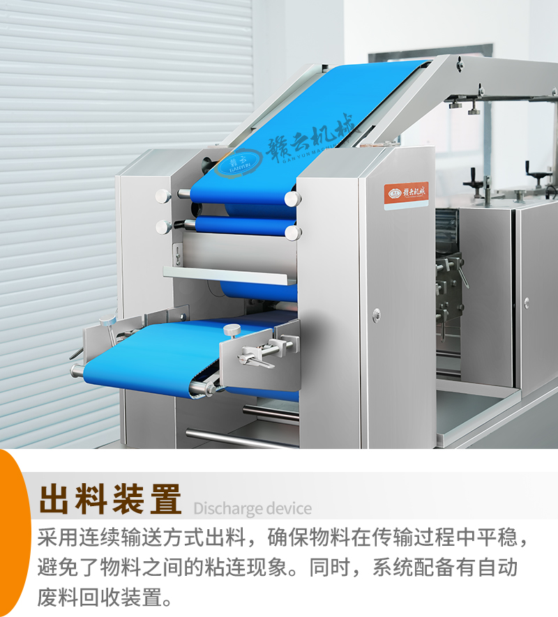 用于全自動面皮生產(chǎn),可加工生產(chǎn)餃子皮、餛飩皮、燒麥皮、包子皮等。