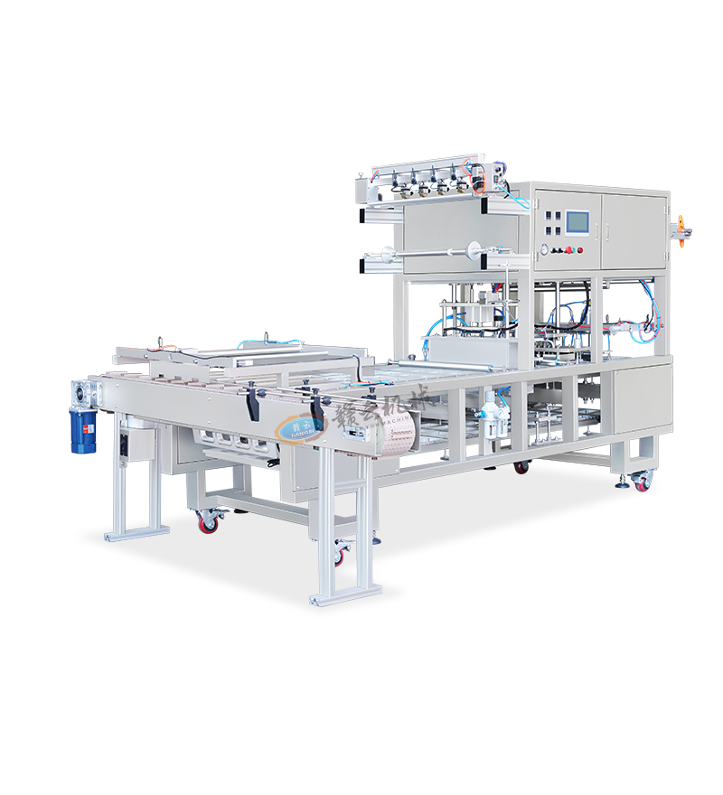 專為預(yù)制菜、快餐盒飯、鮮食、小吃等設(shè)計,實現(xiàn)全自動放盒、封口、切膜,支持異形包裝定制,提升鎖鮮效率與美觀度。