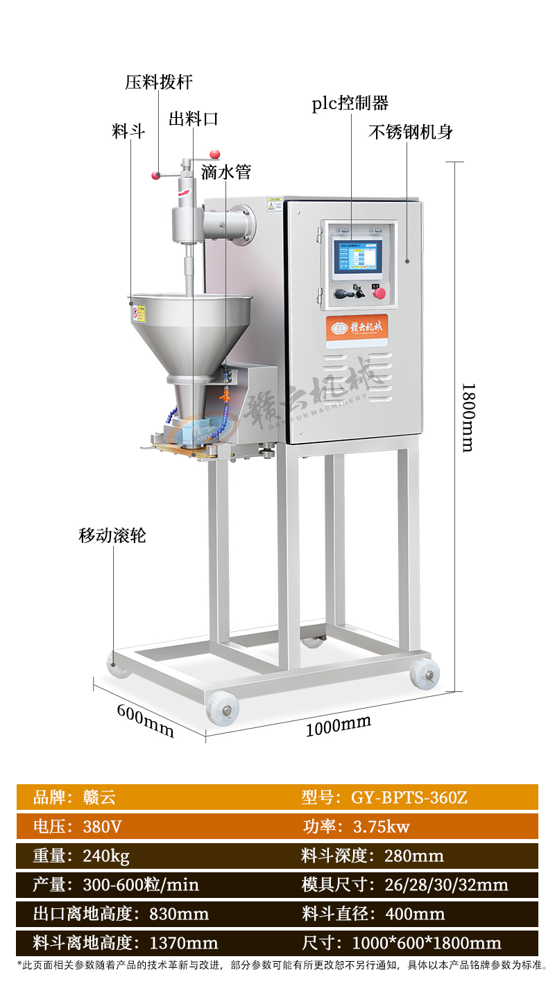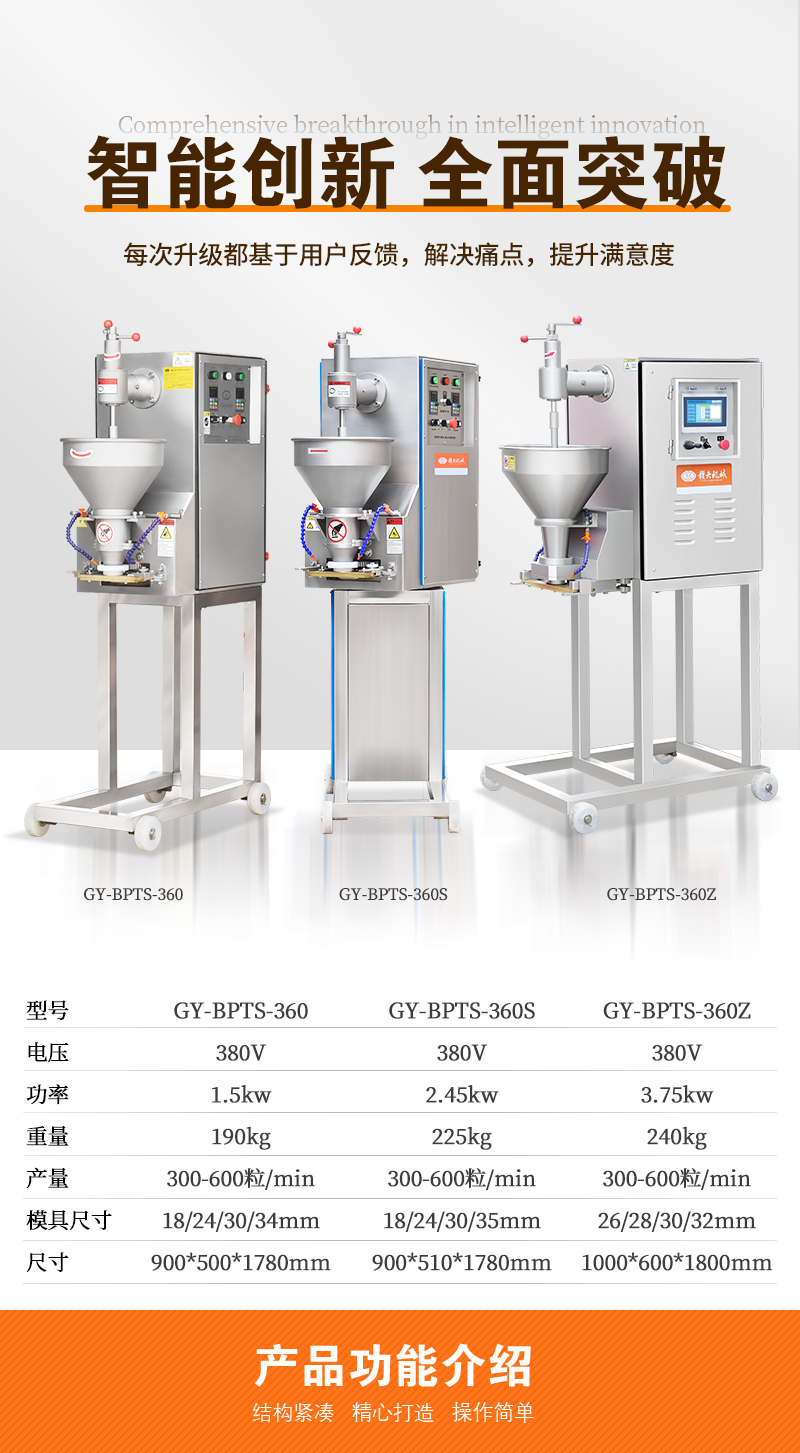 通過PLC智能控制系統(tǒng)與可調壓力螺旋裝置,快速成型魚丸、牛肉丸等多種丸子。