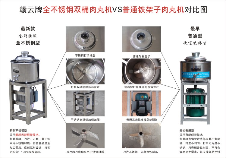 最新款全不銹鋼型肉丸機vs不銹鋼型肉丸機vs普通型肉丸機細節(jié)對比圖: