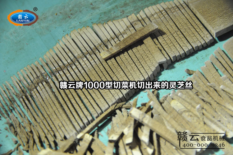將靈芝片放入切菜機豎切入口內:即為輸送帶上