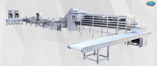 將新鮮成型的魚丸傳輸?shù)降蜏囟ㄐ途上,通過控制設(shè)備的溫度達(dá)到低溫冷卻魚丸的效果,增加魚丸的質(zhì)感。