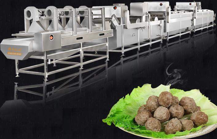 成型后的肉丸直接進入定型線、熟化線、水冷線、風干線,這四線都是相互連接全程自動處理。