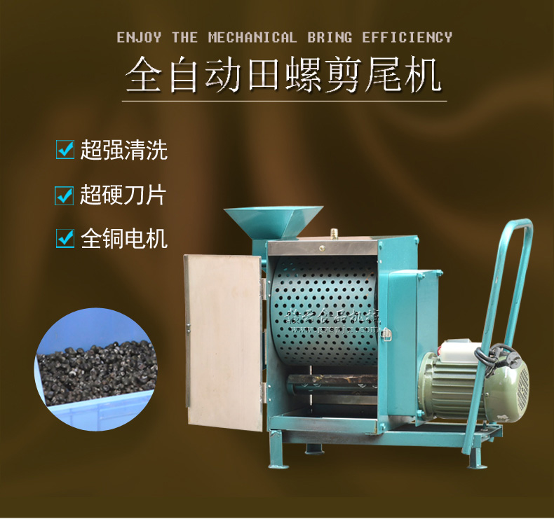 剪尾完畢后記得關閉電源,打開機罩,轉動軸檢查,滾筒內如果有螺螄的話,就用筷子把它頂出,并用清水沖洗剪螺倉,以免第二天發(fā)臭。