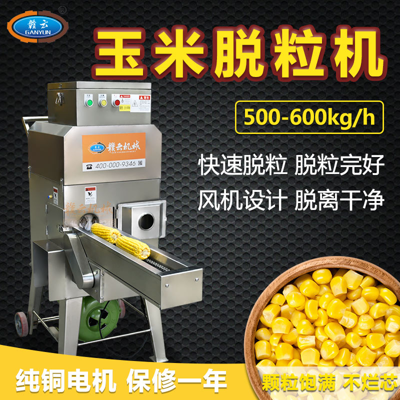 贛云自動(dòng)玉米脫粒機(jī)操作簡(jiǎn)單,適合各種鮮、甜、糯玉米、凍玉米解凍后脫粒。整機(jī)采用全不銹鋼制造,配合腳輪移動(dòng)方便;變頻器控速、操作簡(jiǎn)單;入料口處配有鏈條進(jìn)給裝置,有效地提高了工作效率(此裝置可根據(jù)需要裝卸);輥軸可根據(jù)玉米棒大小自動(dòng)調(diào)節(jié),適合各種大小玉米的脫粒,脫粒深淺可調(diào);出料口配有鼓風(fēng)機(jī)使脫后的玉米粒更加干凈。
