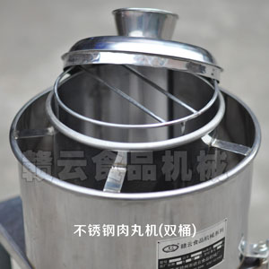打漿桶采用目前國內(nèi)肉丸機的最新技術(shù)--無焊接縫,在舊款全不銹鋼肉丸機的基礎(chǔ)上給支撐架加粗加厚,用不銹鋼蓋,打漿雙桶,刀柄刀片均采用不銹鋼材質(zhì)。打漿桶裝肉量3L,一次可打肉漿6斤左右,采用2800r/min高速電機,故稱之為高速肉丸機。