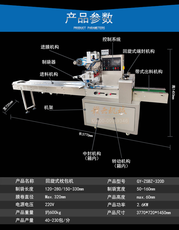 320智能枕式包裝機(不銹鋼)款