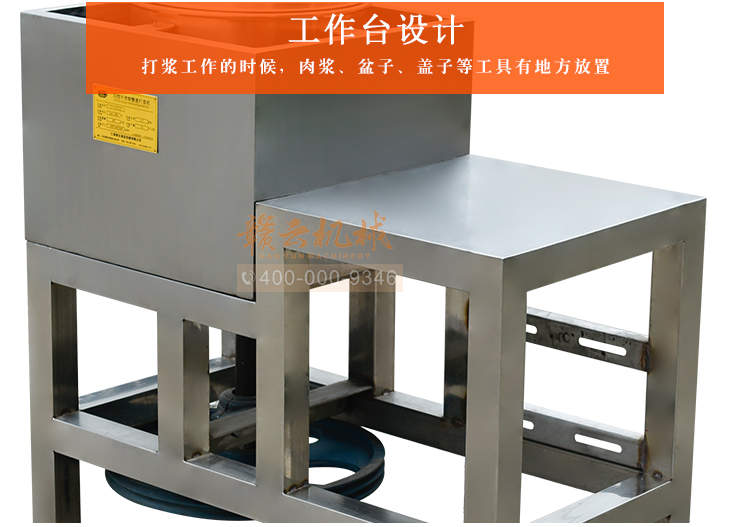 慢速肉丸打漿機有普通型和全不銹鋼型,本款為全不銹鋼系列32型慢速肉丸打漿機,打漿桶直徑320mm,一次可打肉漿15kg左右。通過大皮帶輪減速拍打肉漿,打出的肉漿更有彈性,適合魚丸、牛肉丸和貢丸的制漿之用。