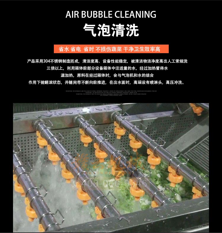 蔬菜清洗機(jī)有效的殺滅有害細(xì)菌,分解殘留農(nóng)藥;通過清洗水循環(huán)利用,可節(jié)約80%的清洗用水用于清洗蘑菇、芹菜、菠菜、白菜等莖葉類蔬菜以及蘋果、西紅柿、辣椒、茄子、黃瓜、草莓等果蔬的主要設(shè)備,廣泛適用于蔬菜加工行業(yè)及廠礦、部隊(duì)、醫(yī)院、各大專院校等單位的食堂。