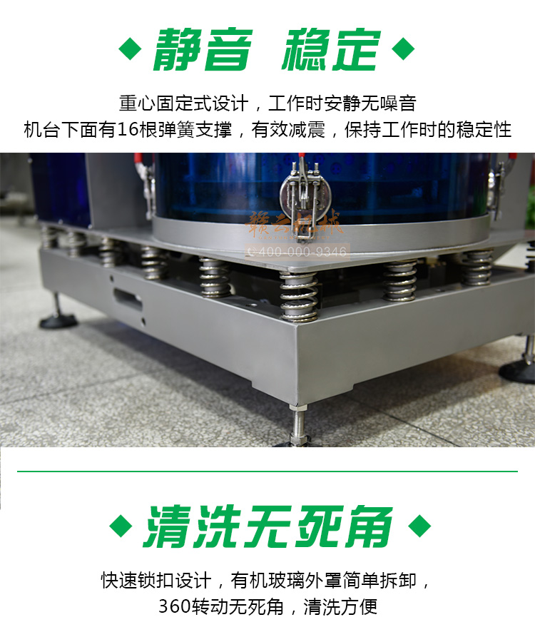 (1)穩(wěn)定性。工作時,機臺下面有16根彈簧支撐,保持工作時的穩(wěn)定性。