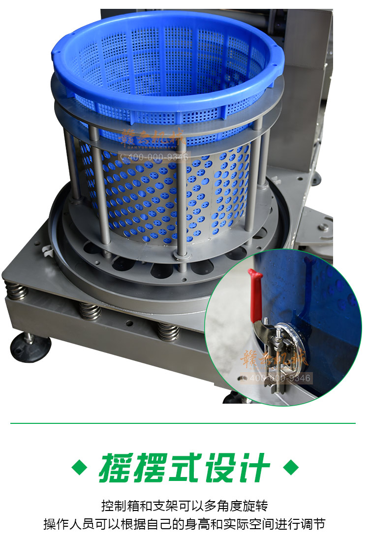 (4) 籃筐式脫水。接料方便,非傳統(tǒng)的袋裝脫水,有利于保護原料。