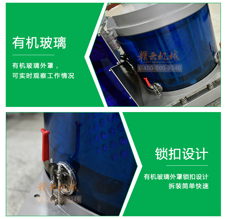 (2)低噪音。機臺工作時比較靜,打破目前市場上脫水機工業(yè)用的大噪音。