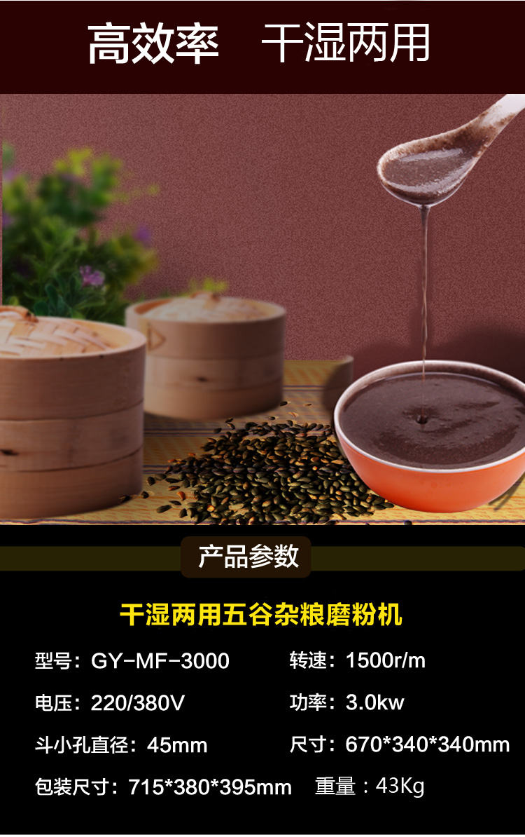 贛云不銹鋼磨粉機(jī)有1100型、2200型和3000型三種型號(hào),這款是3000型不銹鋼磨粉機(jī),造型外觀(guān)和2200型相同,采用干濕磨盤(pán)以及全不銹鋼構(gòu)架,外形美觀(guān)大方,亮光,不銹鋼色澤清洗,采用3kw大功率純銅電機(jī)帶動(dòng)磨盤(pán)轉(zhuǎn)動(dòng),磨粉細(xì)度可調(diào),適合磨不同粗細(xì)的五谷,米漿等。