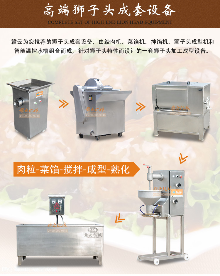 獅子頭成套設(shè)備組合,贛云為您推薦獅子頭成套設(shè)備,本套設(shè)備 由絞肉機(jī)、菜餡機(jī)、拌餡機(jī)、獅子頭成型機(jī)和智能溫控水槽組合而成,針對(duì)獅子頭特性而設(shè)計(jì)的一套獅子頭加工成型設(shè)備。