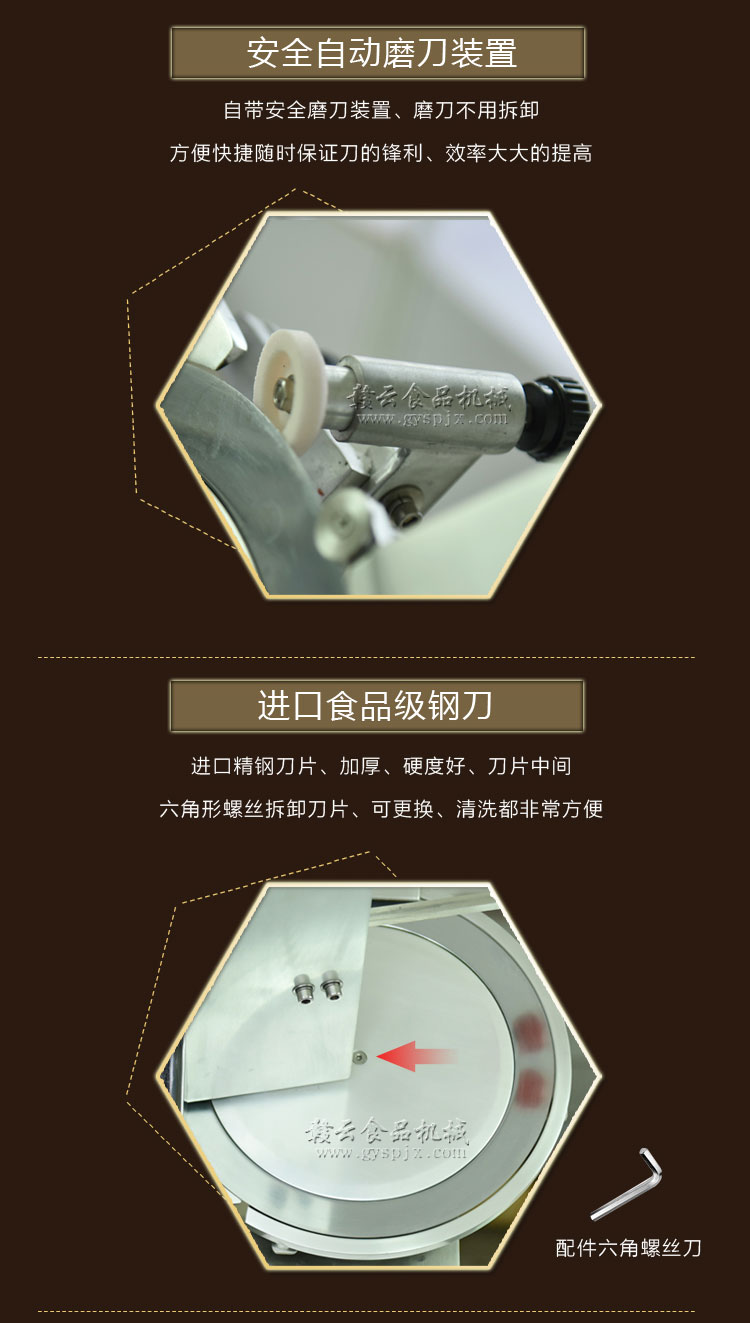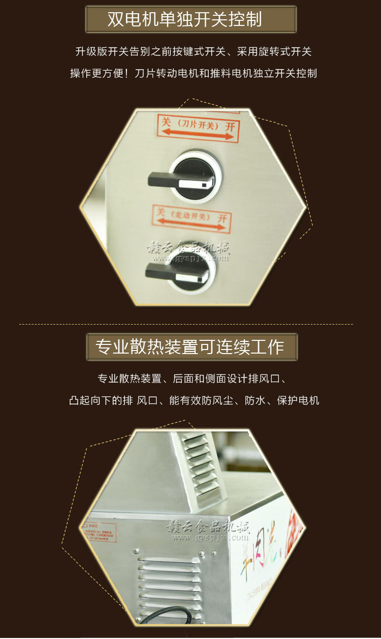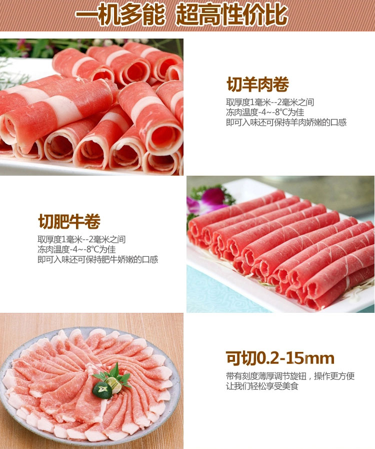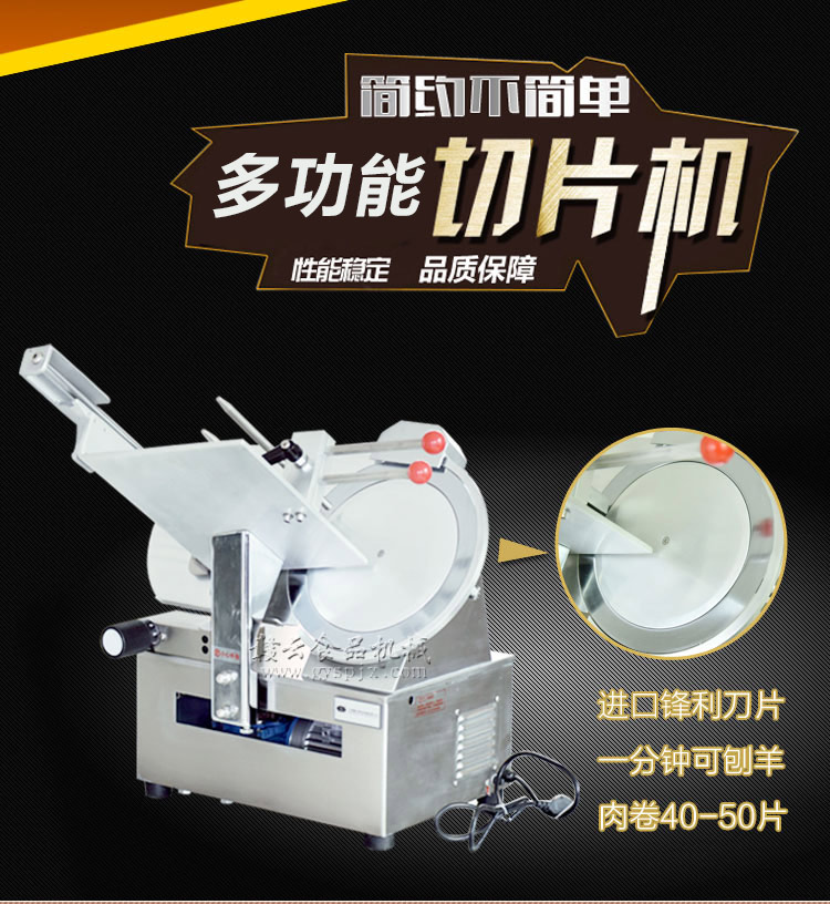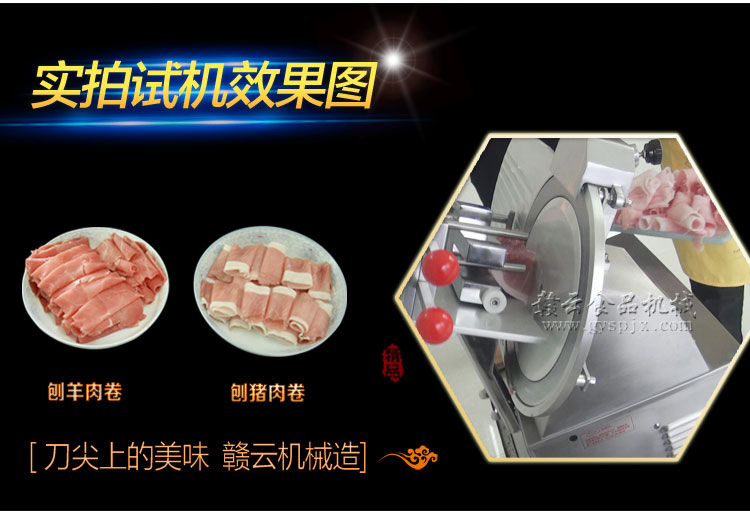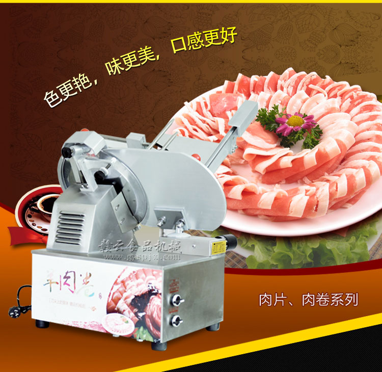 贛云牌全自動羊肉切片機采用加硬不銹鋼刀片,有效的保證了切割效率,切片厚薄可調(diào)0-15mm,可切零度以下凍肉,是凍羊肉、牛肉、豬肉切片,切卷利器;該機采用雙電機分別控制切肉刀轉(zhuǎn)動和推料走動,切肉刀轉(zhuǎn)動控制開關(guān)關(guān)閉狀態(tài)會自動切斷推料走動電機電源,已確保操作人員的人身安全。整機設(shè)計科學(xué)合理、美觀大方、省時省力、安全高效,是火鍋店、酒店、西餐等加工羊肉卷信賴的設(shè)備。