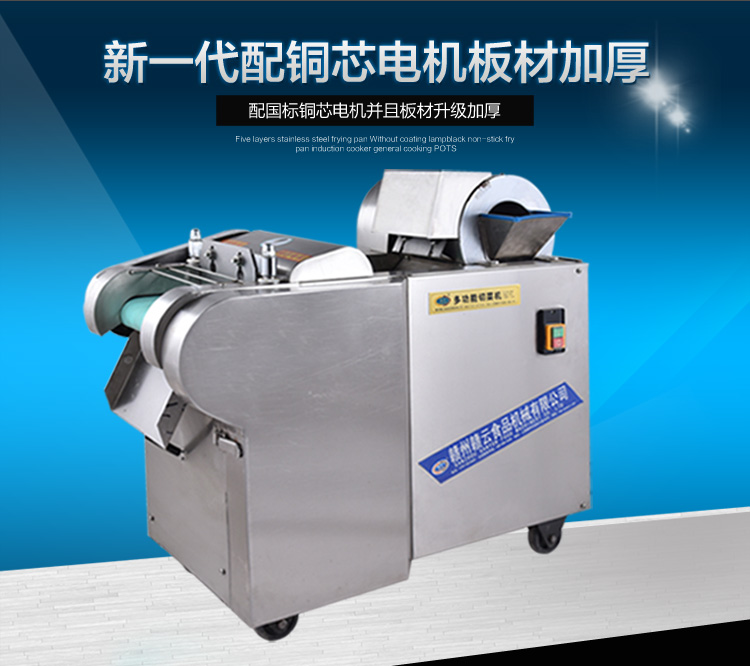 2015年新款加厚型切菜機(jī)是我廠經(jīng)過(guò)多年的切菜實(shí)踐經(jīng)驗(yàn)和客戶反饋等綜合信息考慮設(shè)計(jì)而成的,比原來(lái)的880型切菜機(jī)加厚板材,并配用全銅芯超穩(wěn)定型電機(jī)。保證產(chǎn)品質(zhì)量的同時(shí),使得產(chǎn)品外形更加美觀,更顯不銹鋼檔次。一小時(shí)可切600公斤蔬菜,切菜厚薄可調(diào)0-20mm,切片厚薄可調(diào)0-10mm,模擬手工切菜原理設(shè)計(jì)而成,采用輸送帶完美配合離心切片機(jī)構(gòu)和豎刀切菜機(jī)構(gòu),運(yùn)用手壓原理將切切成有規(guī)則的,間隙均勻的片、丁、絲、條等狀。
