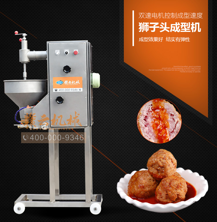 獅子頭成型機(jī)是我司研發(fā)的有一款適合大肉丸成型的設(shè)備,如寧都大肉丸,獅子頭,該機(jī)采用雙速電機(jī)分別控制進(jìn)料速度和切割速度,調(diào)節(jié)更人性化處理,適合不同稀稠度肉漿的成型,是寧都大肉丸、獅子頭成型的好幫手。
