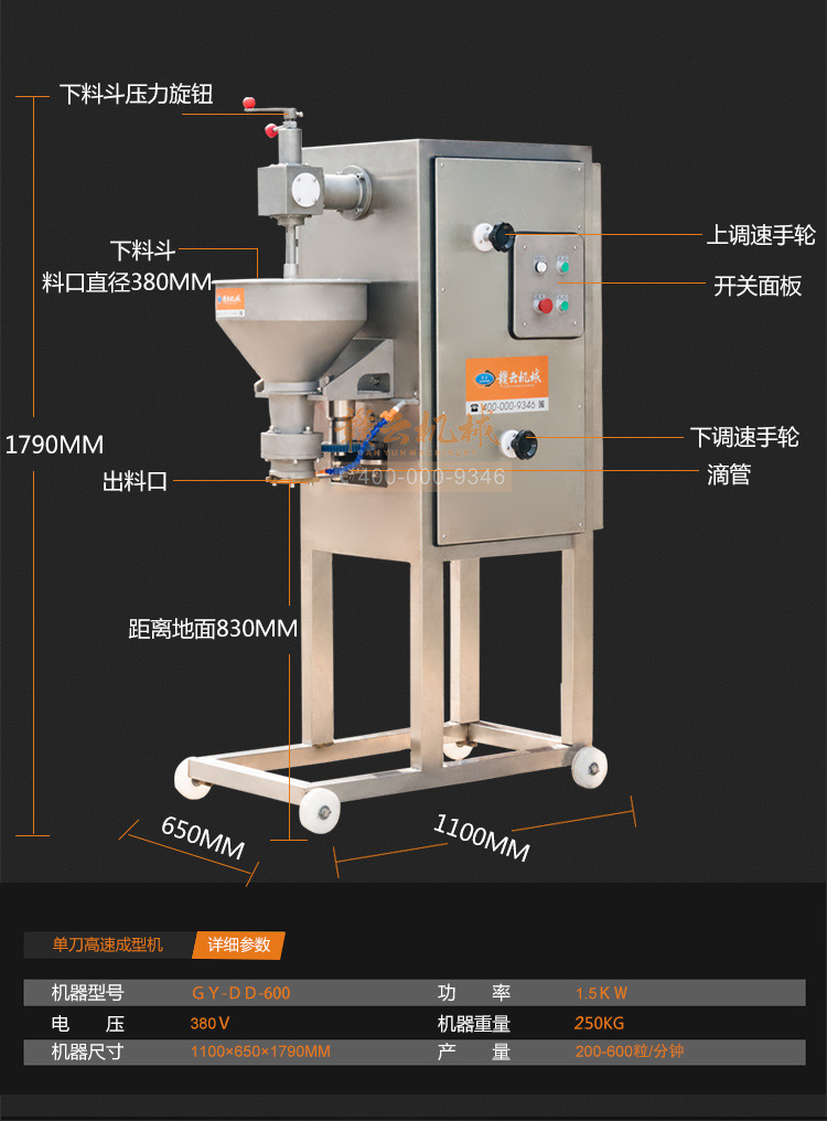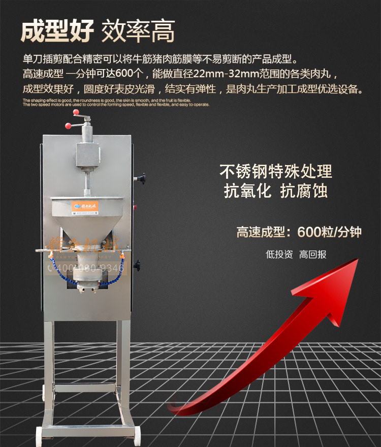 日產(chǎn)3噸的肉丸機,你見過嗎?這是怎樣的機器能做的這么快,堪稱肉丸界的神*器,贛云660型單刀高速成型機,每分鐘快速可成型600個肉丸,一天成型可達(dá)3噸,每小時成型約400kg,采用半開放式切刀高速來回切割,雙調(diào)速設(shè)計,適合各種肉丸成型