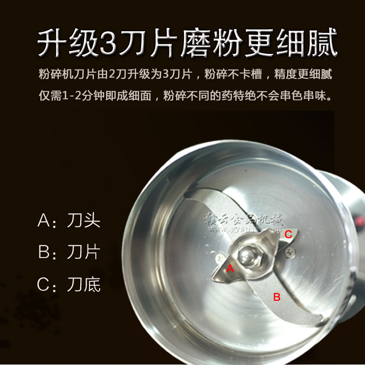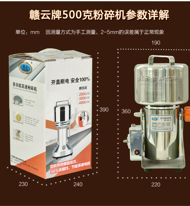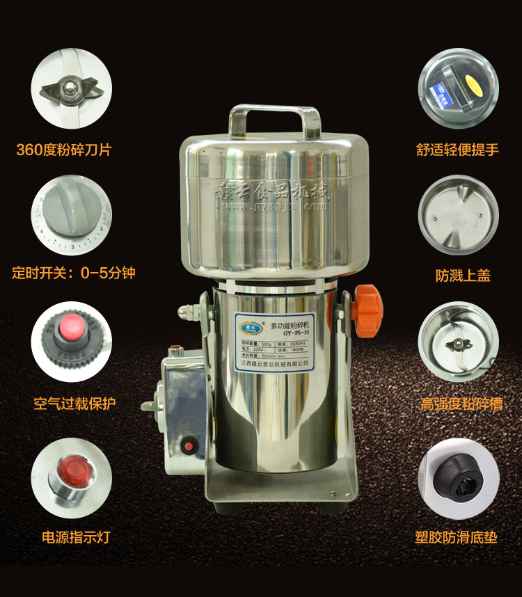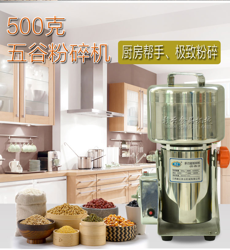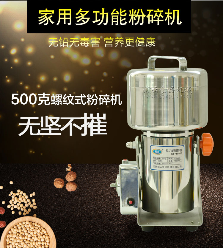 贛云系列多功能粉碎機(jī)采用純銅高速電機(jī)帶動(dòng)粉碎刀片將物料快速打成粉末,可用于粉碎五谷、雜糧、田七、阿膠、白叁等,一般粉碎時(shí)間1-2分鐘即可,新款粉碎機(jī)改保險(xiǎn)絲為空氣過載保護(hù)器,使用更安全,我廠提供的粉碎機(jī)有100克-1000克不同型號(hào)的多功能粉碎機(jī)。