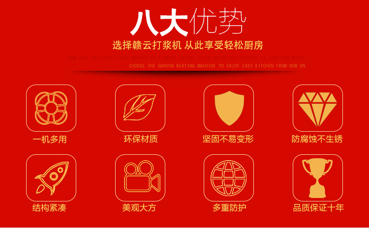 贛云牌新款全不銹鋼肉丸機(jī),22型肉丸機(jī)采用全不銹鋼材質(zhì),支持架加粗加厚,不銹鋼蓋,打漿雙桶,刀柄刀片均采用不銹鋼材質(zhì)。新款打漿雙桶圓形底部弧形設(shè)計(jì),使肉漿在打漿轉(zhuǎn)動(dòng)過程更易向上翻轉(zhuǎn),所打肉漿更均勻。