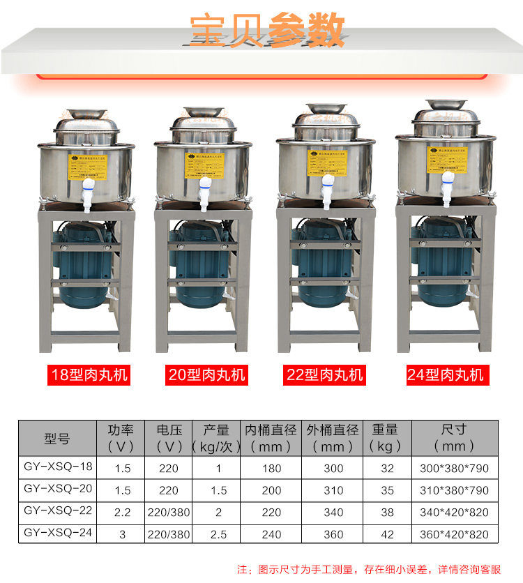 贛云牌新款全不銹鋼肉丸機(jī),22型肉丸機(jī)采用全不銹鋼材質(zhì),在舊款全不銹鋼肉丸機(jī)的基礎(chǔ)上給支撐架加粗加厚,用不銹鋼蓋,打漿雙桶,刀柄刀片均采用不銹鋼材質(zhì)。打漿桶裝肉量2l,一次可打肉漿4斤左右,采用2800r/min高速電機(jī),故稱之為高速肉丸機(jī)。