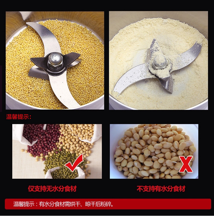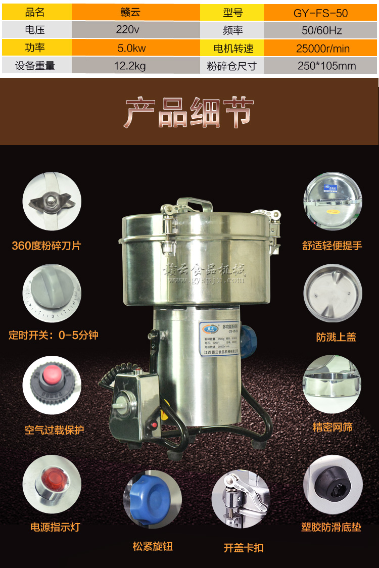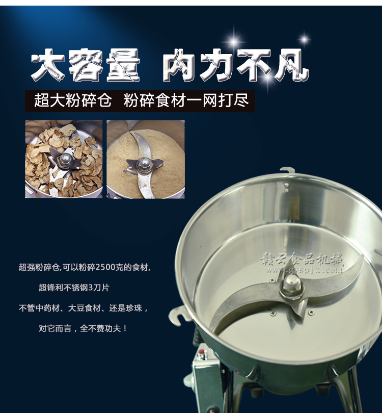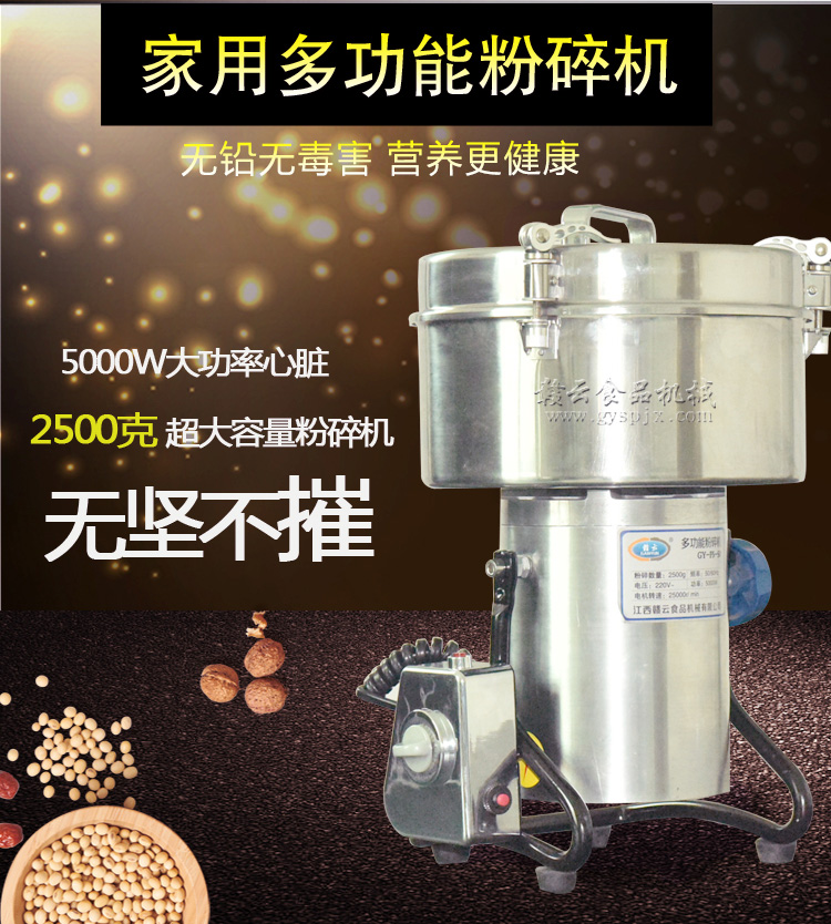 贛云系列多功能粉碎機(jī)采用純銅高速電機(jī)帶動(dòng)粉碎刀片將物料快速打成粉末,可用于粉碎五谷、雜糧、田七、阿膠、白叁等,一般粉碎時(shí)間1-2分鐘即可,新款粉碎機(jī)改保險(xiǎn)絲為空氣過(guò)載保護(hù)器,使用更安全,我廠提供的粉碎機(jī)有100克-1000克不同型號(hào)的多功能粉碎機(jī)。