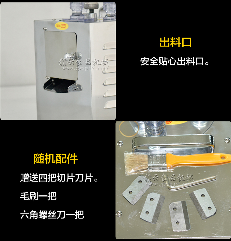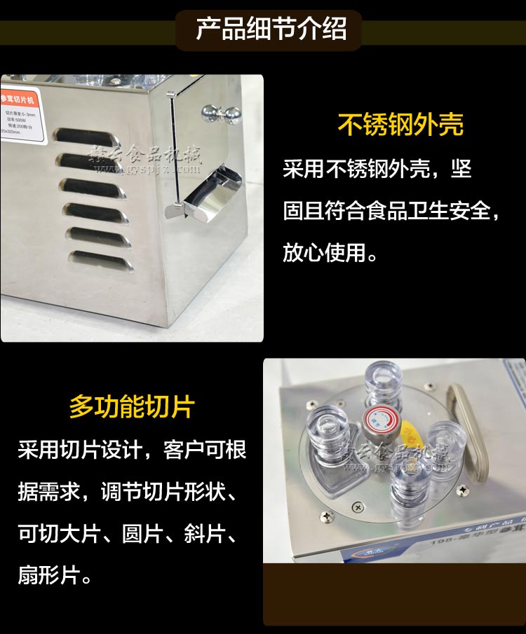 本機選用單相電機配套,采用高檔軸承,并安裝四把刀片在刀盤上,速比慢而切片功效高,切片厚薄可以調(diào)節(jié),廣泛適用于中藥房、藥店、中藥加工場等。本機具有體積少、效率高、操作簡便、精巧美觀,即省電又安全等特點。