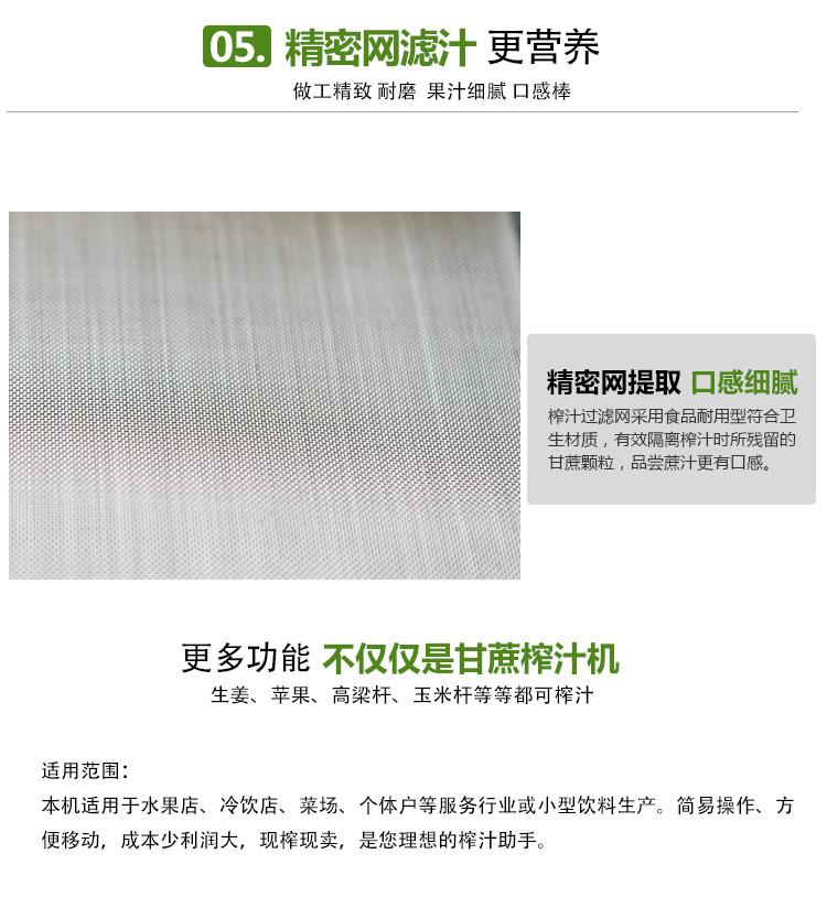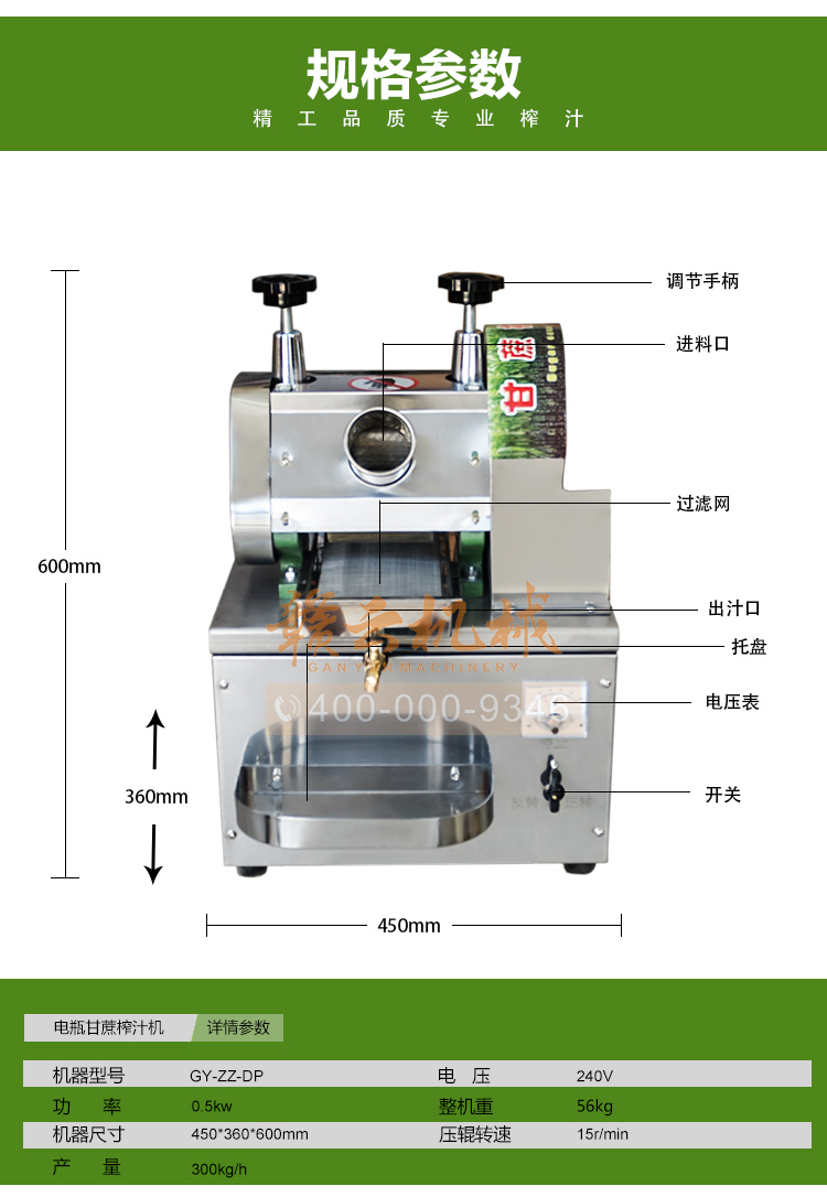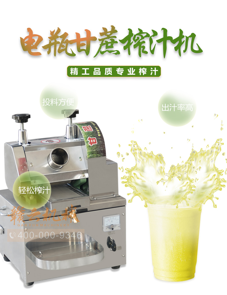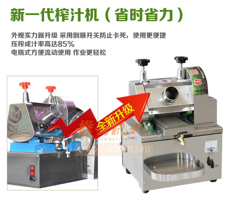 本廠生產(chǎn)的榨液機可以榨甘蔗、生姜汁做姜糖,生姜液調(diào)蛋是婦女的補身佳品,生姜液調(diào)味做面條能開胃口。全新升級電瓶甘蔗榨汁機。