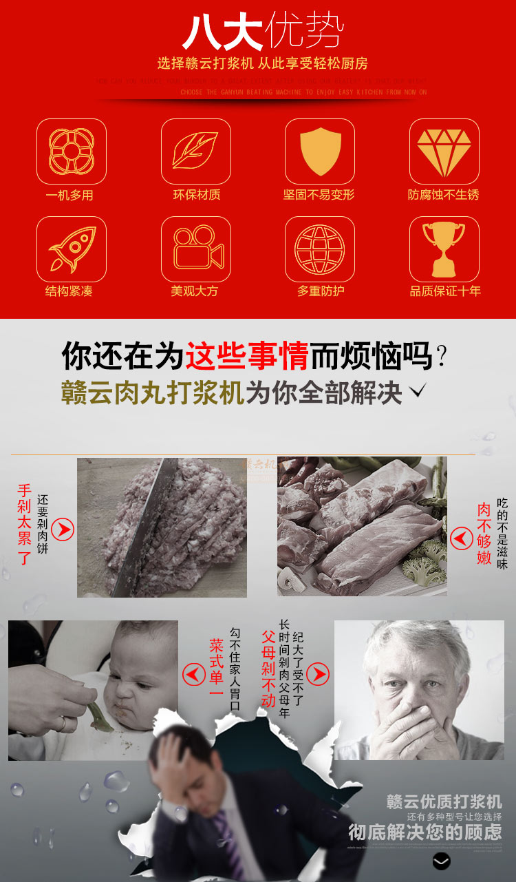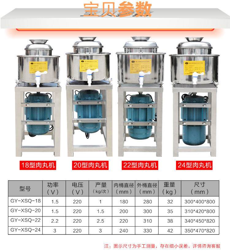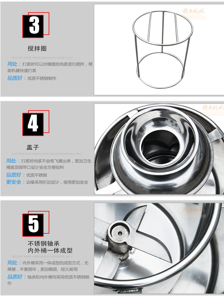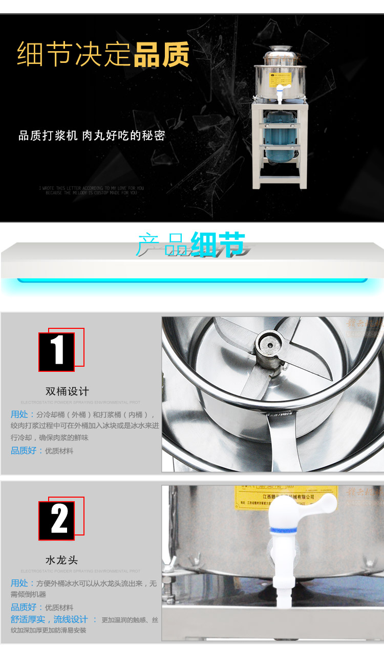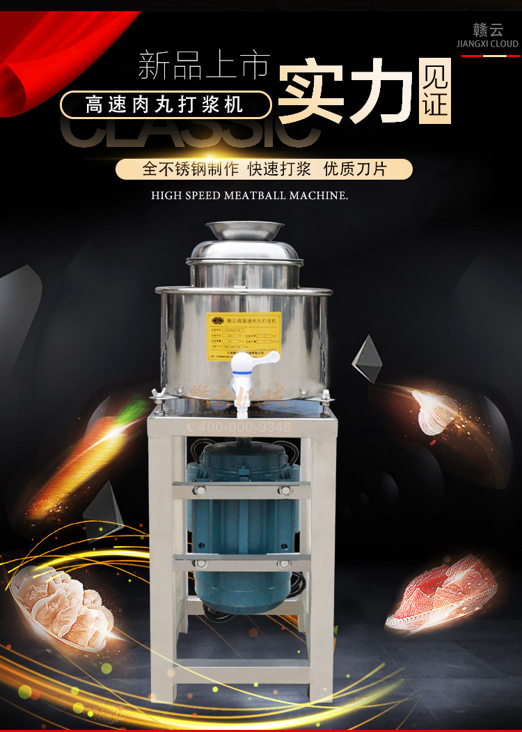 贛云牌新款全不銹鋼肉丸機(jī),18型肉丸機(jī)采用全不銹鋼材質(zhì),在舊款全不銹鋼肉丸機(jī)的基礎(chǔ)上給支撐架加粗加厚,用不銹鋼蓋,打漿雙桶,刀柄刀片均采用不銹鋼材質(zhì)。打漿桶裝肉量1L,一次可打肉漿1-2斤左右,采用2800r/min高速電機(jī),故稱(chēng)之為高速肉丸機(jī)。