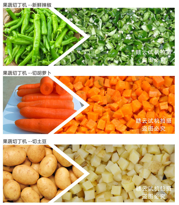 GY-QD-130型專用切丁機(jī)主要部件采用鋁合金和不銹鋼材質(zhì),以保證長期工作不生銹、不腐蝕、無毒、無害,符合食品衛(wèi)生加工要求,適用于脫水蔬菜、速凍蔬菜加工及食品醬菜行業(yè)加工各種根、莖類蔬菜成小立方體或長方體形狀,該機(jī)采用復(fù)合刀具,一次成型,形狀規(guī)則、切片光滑,成型效率高,操作方便、能耗低,深受食品加工伙伴青睞。