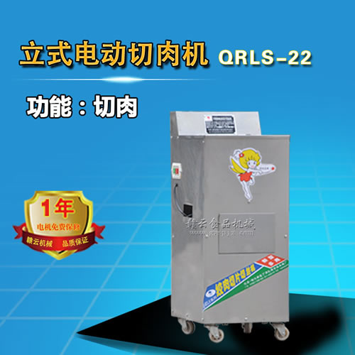 贛云牌立式切肉機(jī)采用1.5kw電機(jī)作為動(dòng)力帶動(dòng)42片圓形等距離刀片雙向向內(nèi)切割小塊肉類,刀片直徑105mm,為使電機(jī)負(fù)荷減少,需將大塊肉切成小塊。立式切肉機(jī)主要用于切肉片、肉絲、肉丁,可切生肉、鹵肉等,常用于鹵菜加工,中小型食堂、飯店等。