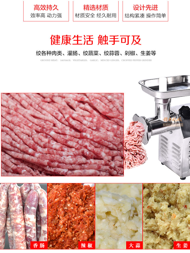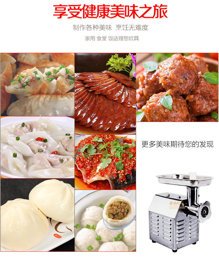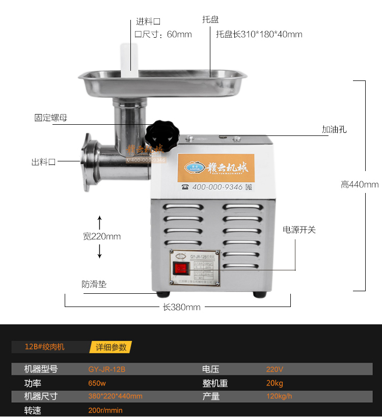 贛云臺式電動12型絞肉機,出新款了,簡介美觀的外形設計,配備650w大功率純銅電機,有效確保動力充足,可絞各種肉類,干貨,鮮蔬等食品