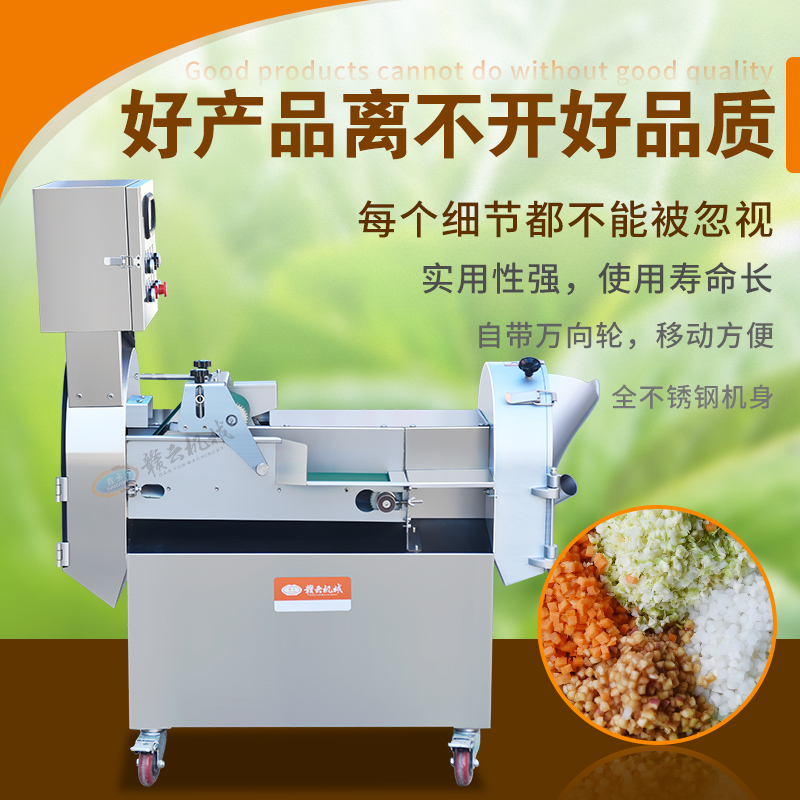 好產品離不開好品質,贛云切菜機采用全不銹鋼機身,堅固耐用,使用壽命長。機器細節(jié)之處也經(jīng)過精心打磨,注重品質,值得廣大客戶的信賴,設備實用性強。切菜機工作效率高,一臺機器堪比10個人工,大大的節(jié)省了人工成本。