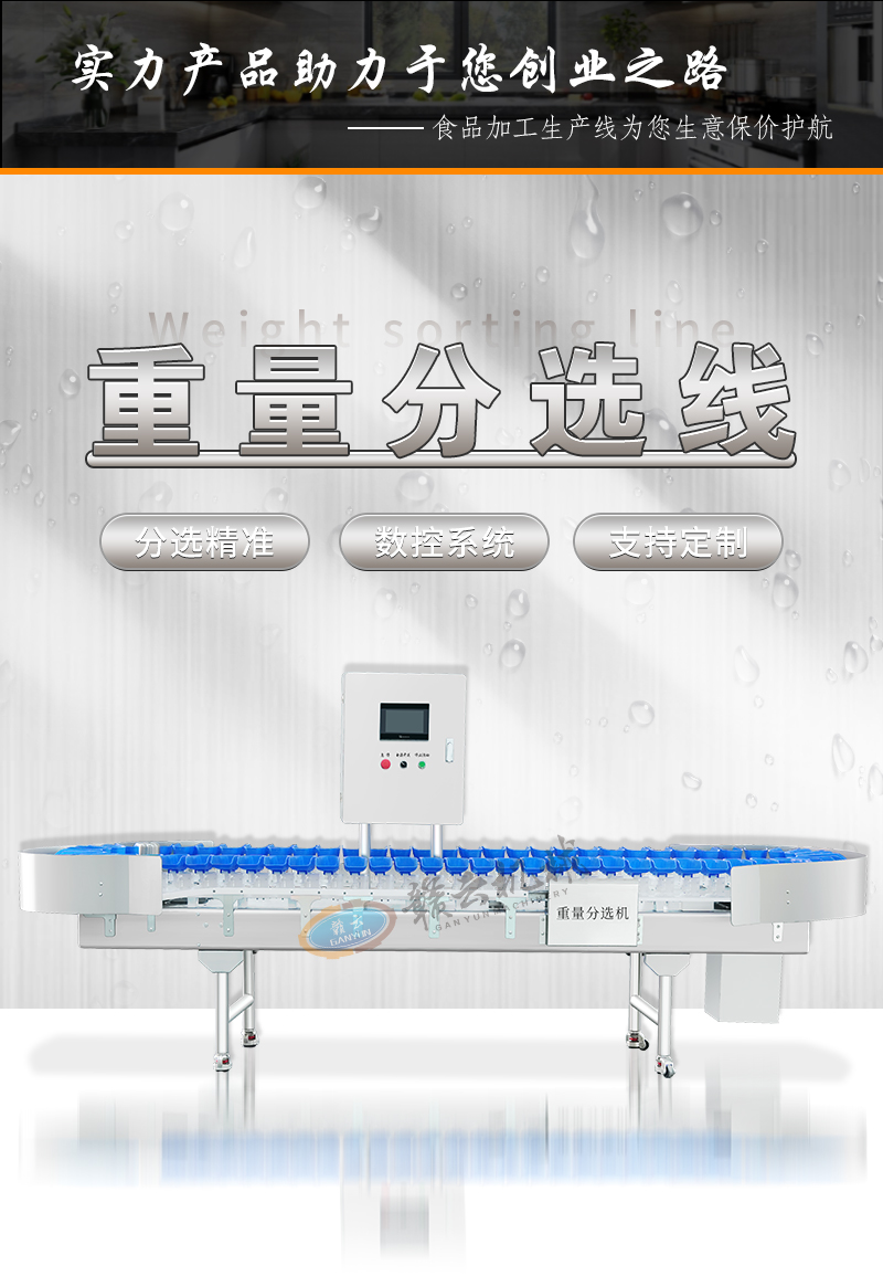 重量分選機用于自動化流水線及水產(chǎn)、食品等行業(yè),對多類產(chǎn)品按重分選,降本增效,提升產(chǎn)品品質。