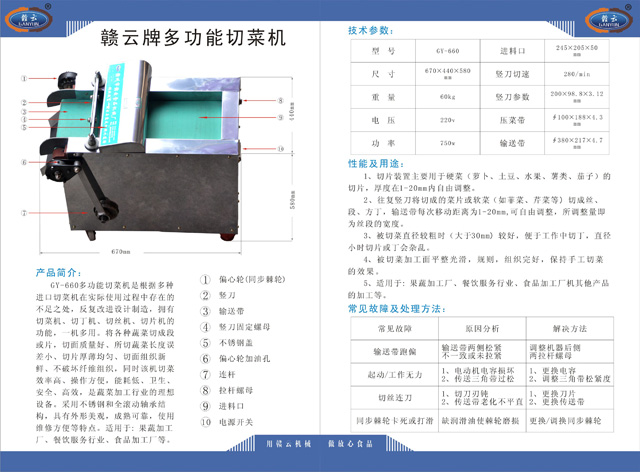 贛云牌多功能切菜機(jī)說(shuō)明圖: