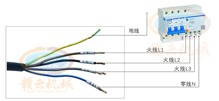 1、機(jī)器放水平地面上,讓機(jī)器設(shè)備整體平穩(wěn)、所有支撐腳都接觸到地面,對設(shè)備進(jìn)行搖晃測試后不會出現(xiàn)搖晃現(xiàn)象。請將三相四線安全正確接入空氣開關(guān)內(nèi),并確保該空氣開關(guān)或閘刀保險(xiǎn)容量符合設(shè)備功率運(yùn)轉(zhuǎn)。(空氣開關(guān)63A以上為佳)