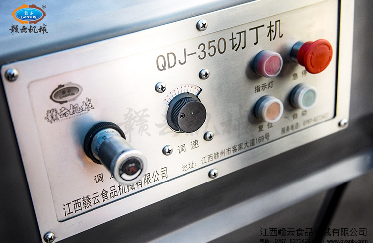 控制面板采用不銹鋼磨砂處理,激光雕刻公司logo,企業(yè)名稱及按鍵指示,使得產(chǎn)品具有金屬光澤,凹凸有序,一眼望去,讓我們感覺它就是切肉丁機(jī)中的王者,無形之中透入著王者霸氣。