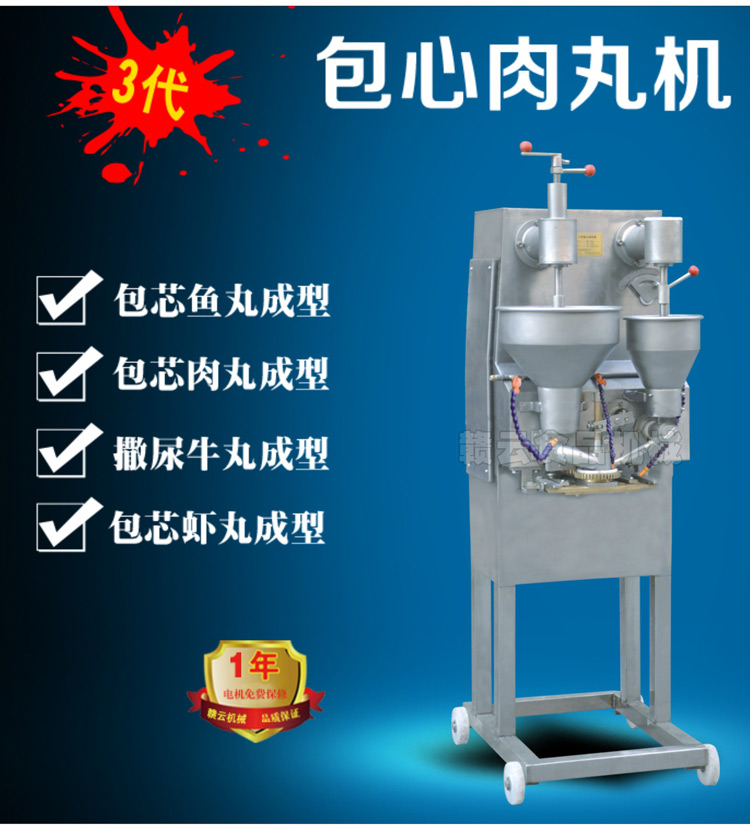 現(xiàn)在肉丸成型機在市場上的需求量也是快速增長的趨勢,而且生產(chǎn)肉丸不僅投資小還利潤高,在食品市場上見效也非常塊,肉丸成型機可以符號市場需求各種原材料都可以加工制作,無論是蔬菜餡、肉類餡的,可以制作各類爽脆,有韌性、有彈性的魚丸,豬肉丸,牛肉丸,雞肉丸等等,包心肉丸機所有這一切都能滿足您的加工使用。丸子機在運轉(zhuǎn)時,丸子直接落入接盤中,減少了人體對制品的接觸,更安全衛(wèi)生。現(xiàn)已走向全國內(nèi)地省市和海外飲食市場。
