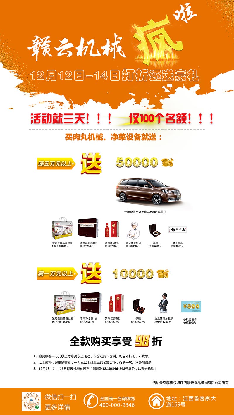 我們贛云機(jī)械攜手海馬汽車集團(tuán),研博教育集團(tuán),瀘州老窖,波司登等贊助單位鉅惠全國。史無前例的豪禮等你拿!