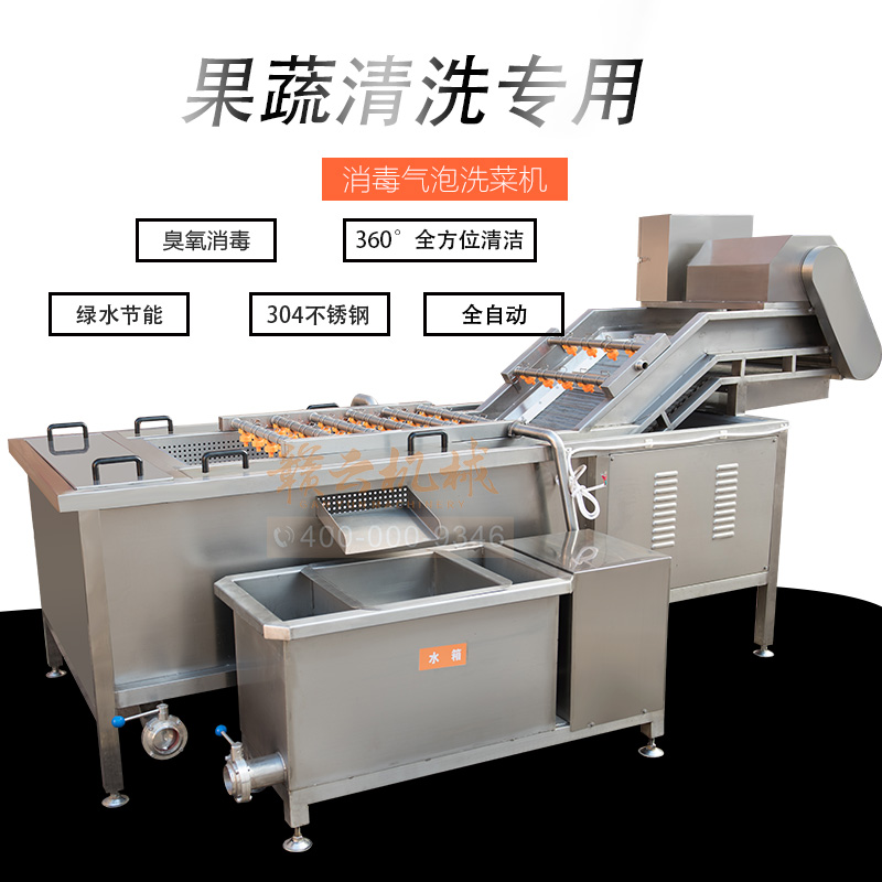 1、蔬菜清洗機:蔬菜清洗機采用汽泡水浴清洗,蔬菜清洗機中設有氣泡發(fā)生裝 置,使物料呈翻滾狀態(tài),去除產品表面農殘功效,同時可加入適量的藥劑,進行 消毒固色,漂浮物可以從溢流槽溢出,沉淀物從排污口排出,以達到清洗的目的。