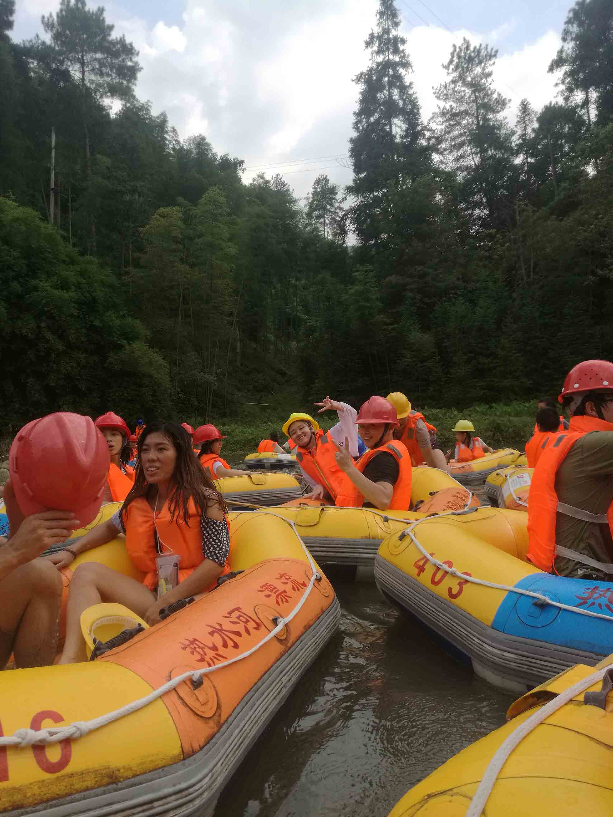 中午,大家集合聚餐。在農(nóng)家的院子里,體驗(yàn)鄉(xiāng)村的生活,大家互相交流情感。吃了農(nóng)家菜之后,便開(kāi)始走上了漂流之旅,此次漂流的地點(diǎn)是在湖南汝城熱水河漂流,兩岸青山依依,竹海呢喃,自然形成的青石河,小橋、古樹(shù)、田野、村莊,無(wú)限風(fēng)光。大家駕駛著雙人座特制橡皮艇,穿峽谷、越險(xiǎn)灘,時(shí)兒急流激蕩,時(shí)兒緩流輕越,迎面而來(lái)的是一種其樂(lè)無(wú)窮的驚、險(xiǎn)、奇。在比較平緩的水灘上大家在享受優(yōu)美自然景色,打水仗等,同時(shí),也不忘留影紀(jì)念,這次旅游不但營(yíng)造了和諧融洽的集體氣氛,而且增進(jìn)了彼此的情感。