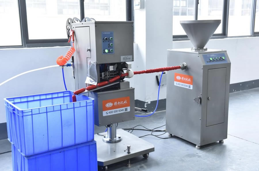 火腿腸肉漿加工好了,接下來(lái)就是灌腸打扣了,自動(dòng)化灌腸打扣一體機(jī),告別傳動(dòng)半自動(dòng)灌腸手動(dòng)打扣的低效率和繁瑣,肉漿一倒,機(jī)器一開,參數(shù)一調(diào),灌腸打扣一步到位,自動(dòng)化灌裝,精準(zhǔn)灌火腿腸,每一節(jié)都是一樣飽滿,每一節(jié)都是一樣長(zhǎng)。